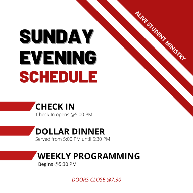 WeeklySchedule Overview Sunday Wednesday For more events and details check out our calendar below for our Events & Registrations Select an event below for more details